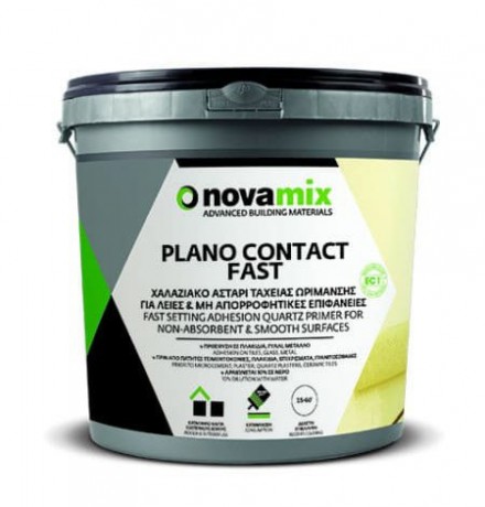 Fast setting quartz primer used for creating an adhesion bridge on non-absorbent and smooth substrates such as: metal, glass, existing paving and also slightly absorbent such as gypsum boards, cement boards, smooth concrete. It is used prior to the application of ceramic tiles with cement-based adhesives (like NOVACOL FLEX, NOVACOL ULTRA GEL), microcement coatings such as PLANOCOLOR PREMIUM, organic plasters such as PLANOCOLOR ACR or quartz plasters prepared by using PLANOCOLOR AC acrylic binder. It can receive the subsequent layer after 15-60 minutes. For slightly absorbent substrates it can be applied diluted up to 10% with water.